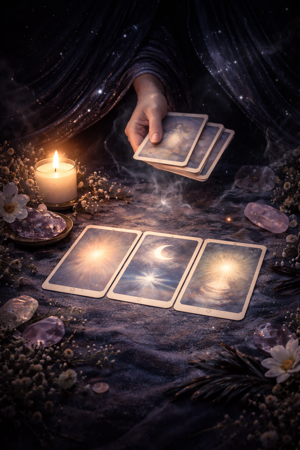 A 1‑card pull gives you the core message. A 2‑card pull adds context or contrast. A 3‑card pull reveals the situation, the challenge, and the guidance